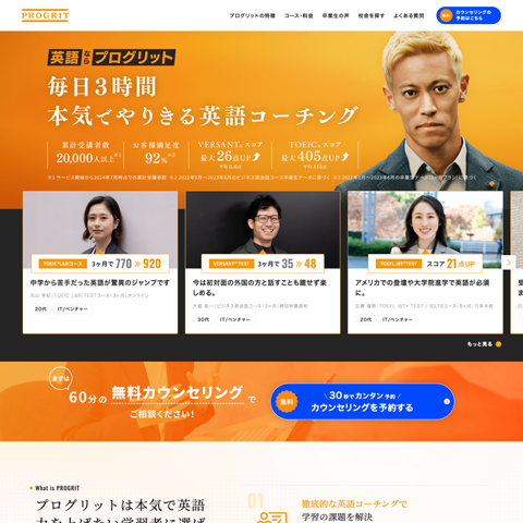 - カウンセリングや習慣化システムで、挫折しやすい英語学習も続けやすい